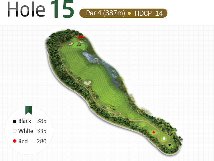 Àüü °ø·« °Å¸®¿¡¼³ª ±×¸° ÄÞÇ÷º½ºÀÇ ¹æ¾î´É·Â¿¡ ÀÖ¾î¼ ÃÖ°íÀÇ ³À̵µ¸¦ °¡Áø ȦÀÌ´Ù. ÃÖ»óÀÇ Tee ShotÀ» ±¸»çÇÑ´Ù¸é ·¹±Ö·¯ ¿ÂÀÌ °¡´ÉÇÏÁö¸¸ ±×·¸Áö ¸øÇÏ´Ù¸é ¾ÈÀüÇÏ°Ô ¾²¸®¿ÂÀ¸·Î ±×¸°À» °ø·«ÇÏ´Â °ÍÀÌ ÁÁ´Ù. Ç÷¹À̾îÀÇ µµÀüÁ¤½ÅÀ» ÀÚ±ØÇϴ ȦÀÌÁö¸¸ Green ÁÖº¯ÀÇ Bunker¿Í ÇØÀúµåÀÇ ³À̵µ°¡ ³ôÀ¸¸ç ƯÈ÷ Par4 Hole Áß¿¡¼ °¡Àå ±ä °Å¸®¸¦ °¡Áø HoleÀ̹ǷΠŸ¼ö¸¦ ÁöŰ´Â °ÍÀÌ ¸ñÀûÀÌ µÇ¾î¾ß Çϴ ȦÀÌ´Ù.