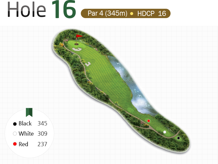Par 4 HoleÁß¿¡¼ °Å¸®°¡ Á¶±Ý ªÀº ÆíÀÌ´Ù. ¿¬¸ø°ú °Å´ëÇÑ ºñÄ¡º¡Ä¿·Î ±¸¼ºµÈ ȦÀÇ Àü°æÀº 17¹ø Ȧ°ú ´õºÒ¾î ÀÎÄÚ½º ÃÖ°íÀÇ °æ°üÀ» ¸¸µé¾î ³»Áö¸¸ ÄÚ½º´Â Àý¹¦ÇÏ°Ô ³«±¸ÁöÁ¡À» ã¾Æ¼ ¹èÄ¡µÈ º¡Ä¿·Î ÀÎÇÏ¿© °ø·«ÀÌ ½±Áö´Â ¾Ê´Ù. ÀÌ È¦Àº º¡Ä¿¿Í ¿öÅÍÇìÀúµå¸¦ ÇÇÇÏ´Â Ç÷¹À̰¡ °ü°ÇÀÌ´Ù. Ƽ¼¦Àº Æä¾î¿þÀÌ ÁÂÃøÀÇ º¡Ä¿¿¡ ±ÙÁ¢ÇÏ¿©¾ß ±×¸°°ø·«ÀÌ ¼ö¿ùÇÏÁö¸¸ ¿ÀÈ÷·Á º¡Ä¿¿¡ ¹ÌÄ¡Áö ¸øÇÒ ¸¸Å ª°Ô ±¸»çÇÏ´Â °Íµµ ¹æ¹ýÀÌ µÉ ¼ö ÀÖ´Ù. ¿ìÃøÀ¸·Î °æ»çÁø ±×¸°Àº ´Ü ÇÑ °³ÀÇ º¡Ä¿°¡ ¹èÄ¡µÇ¾î ÀÖÁö¸¸ Á¤È®ÇÑ °ø·«À» ¿ä±¸ÇÑ´Ù.