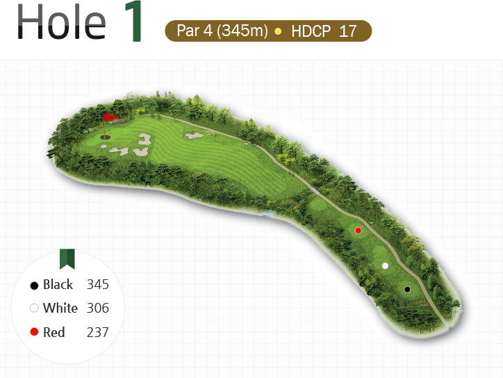 ù Ȧ·Î¼ Æí¾ÈÇÑ ½ÃÀÛ¿¡ ÁßÁ¡À» µÐ ¹«³ÇÑ ÄÚ½º·Î °èȹÇÏ¿´´Ù. Tee ShotÀº ÀÛÀº °è·ùÀ» °Ç³Ê ÃÄ¾ß ÇÏÁö¸¸ Å©°Ô ºÎ´ãÀÌ ¾øÀ¸¸ç Landing ZoneÀÇ ¿ìÃøÀº °æ»ç¸éÀ̹ǷΠºÎ´ã¾ø´Â Ƽ¼¦ Ç÷¹À̰¡ °¡´ÉÇÏ´Ù. ¼¼ÄÁ¼¦Àº ±×¸° ¿ìÃøÀ¸·Î ±æ°Ô °ø·«ÇÏ´Â °ÍÀÌ ¾ÈÀüÇϵµ·Ï ±¸¼ºÇÏ¿´À¸¸ç ±×¸° ÁÖº¯À¸·Î ´Ù°¡ °¥¼ö·Ï ³·Àº À§Ä¡ÀÇ È¦µéÀ» ¹è°æÀ¸·Î Á¶È·Î¿î º¡Ä¿¿Í ±×¸°ÀÌ ¾Æ¸§´Ù¿î ȦÀÌ´Ù. (Fairway¿ìÃøÀÇ º¡Ä¿´Â Slice ShotÀ» ¹æÁöÇϱâ À§ÇÑ ½Ã°¢Àû ºÎ´ã¿ä¼ÒÀÇ ÀÛ¿ëÀ» Çϸç 300yard Á¤µµÀÇ À埰¡ ¾Æ´Ï¸é Play¿¡ Å©°Ô ¿µÇâÀ» ¹ÌÄ¡Áö´Â ¾Ê´Â´Ù. ±×¸° ¿ìÃøÀÇ ³ÐÀº ¿©À¯°ø°£Àº Second ShotÀÇ ºÎ´ãÀ» ÁÙ¿©ÁÖ¸ç Æí¾ÈÇÏ°í ¾ÈÁ¤ÀûÀÎ Start HoleÀÌ µÇµµ·Ï ÇÏ¿´´Ù.)